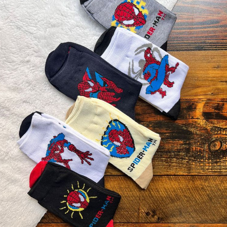 Kit 3 Pares Meia Infantil Marvel Homem Aranha Personagens Menino Cano médio Conforto