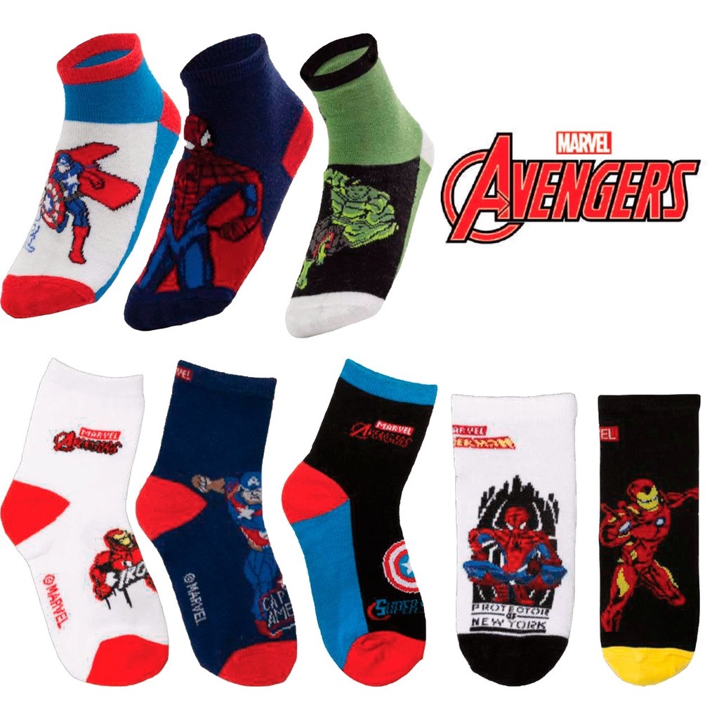 Kit 3 Pares Meia divertidas Marvel Infantil Homem Aranha Hulk capitão américa diversos Menino promoção
