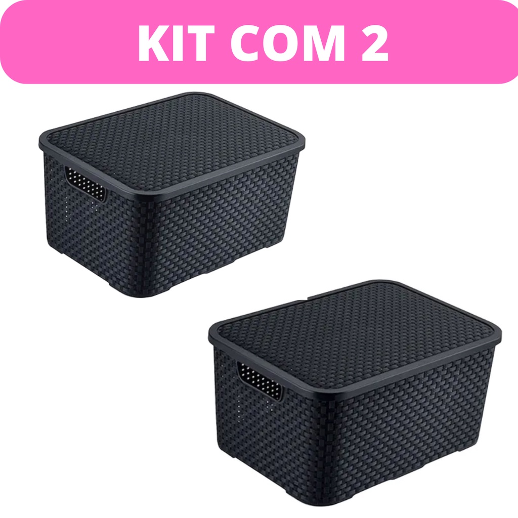 Kit Com 2- Cesto Caixa Organizadora Com Tampa - 7 Litros - Preto