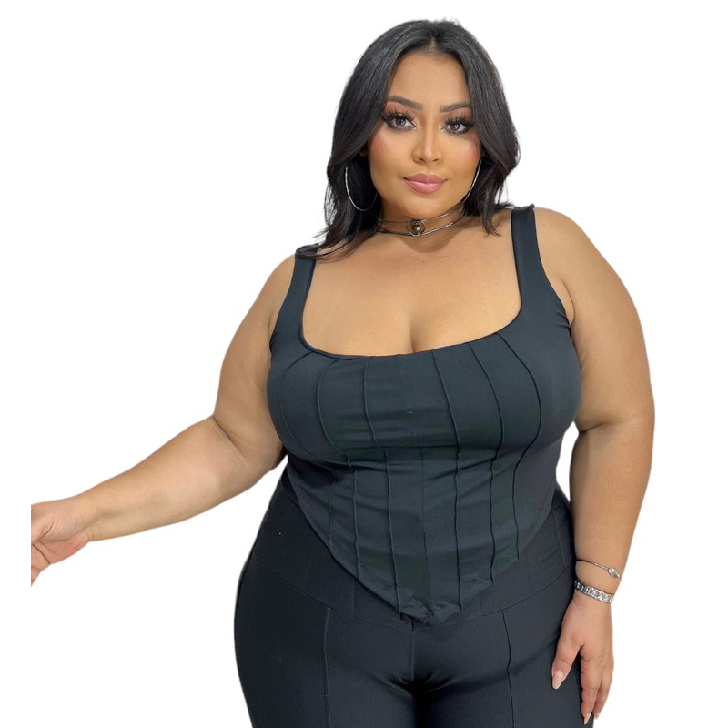 Cropped Plus Size Feminino Corselete Top Blusa Corpo Plus Modelador Blusinha Preto