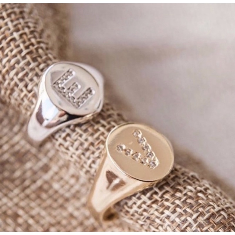 anel dedinho/mindinho de letra/inicial regulável com zircônias