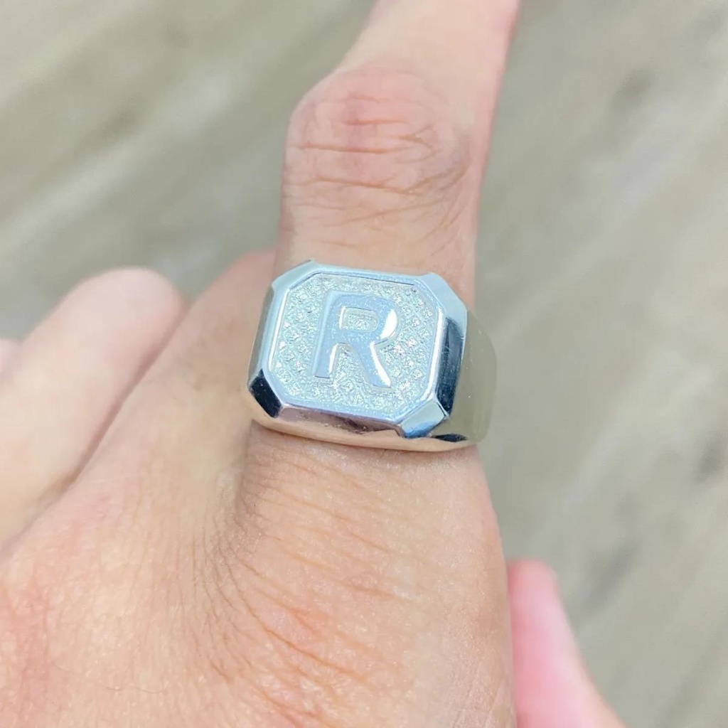 Anel Masculino de Prata 925 Letra R Anel De Letra Banhado a Prata 925 Italiana Dedeira