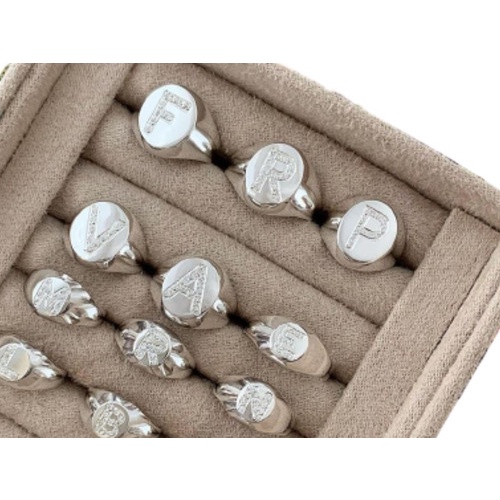 Anel de Prata Legítima 950 com Letra Inicial do Nome Personalizado Feminino Todas as Letras A-Z