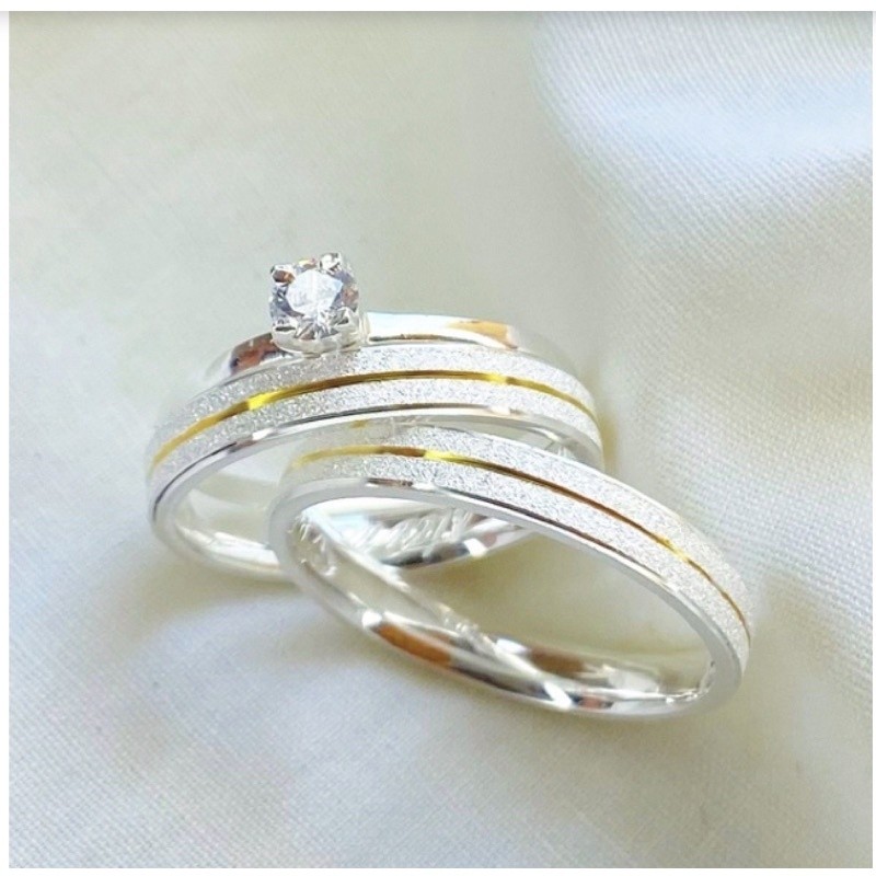 Par de alianças prata 950 friso banhado a ouro18k minimalista casal 3mm com anel prata 925 solitário