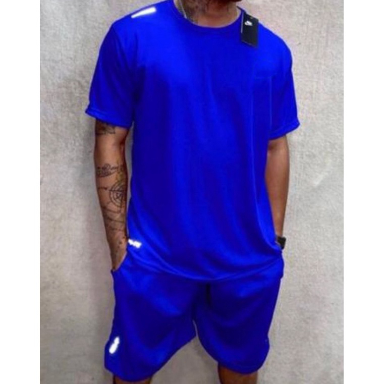 Kit 1 Camiseta Camisa Masculina Dry Fit + 1 Bermuda Shorts Nk Casual Academia - Conjunto