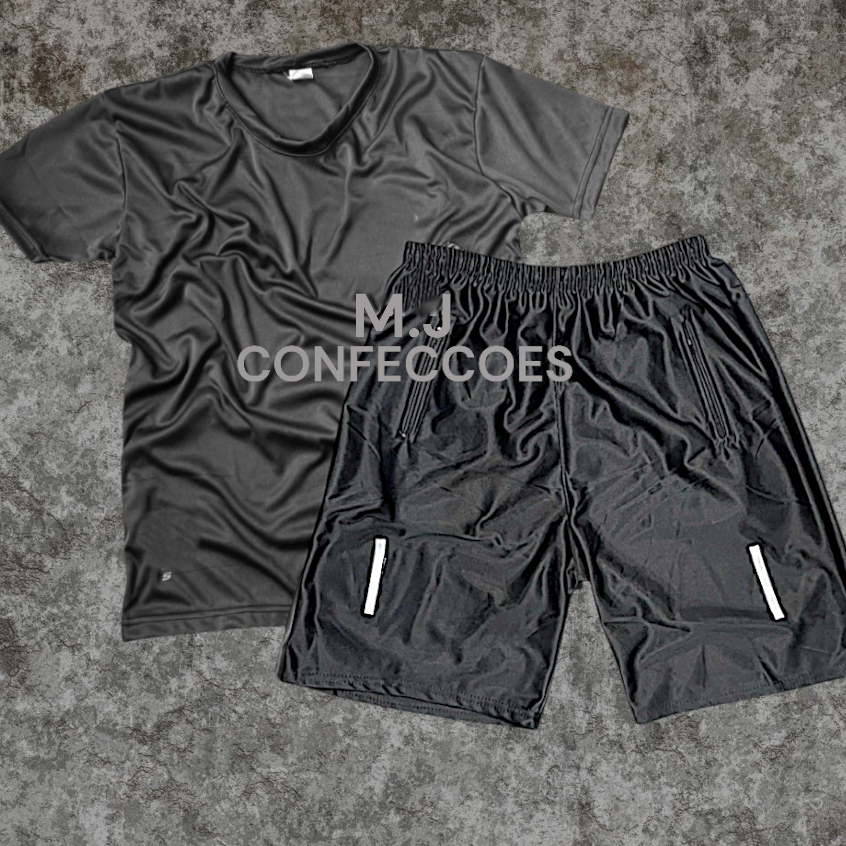 Conjunto 1 Bermuda com Detalhe Refletivel + 1 Camisa Dry Fit Tecido Levíssimo