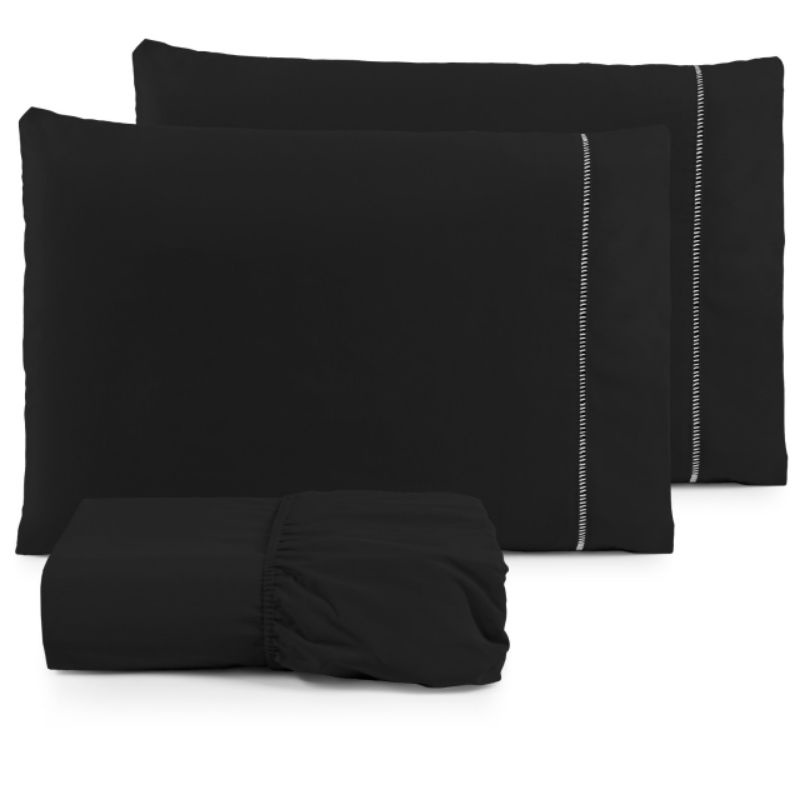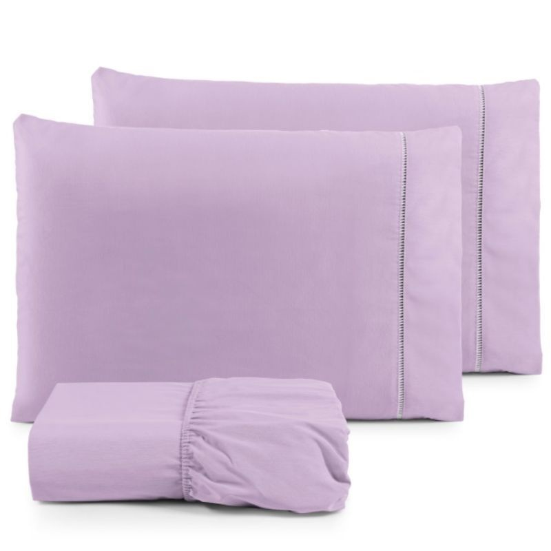 Jogo de Lençol Tamanho Casal 03 peças com elástico fronhas com ponto palito micro percal 400 fios