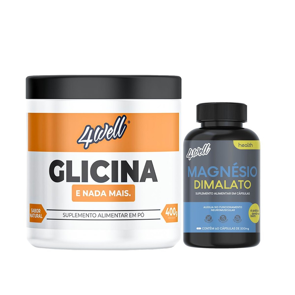 Kit Glicina 400g Pote + Magnésio Dimalato 60 Cápsulas - 4well