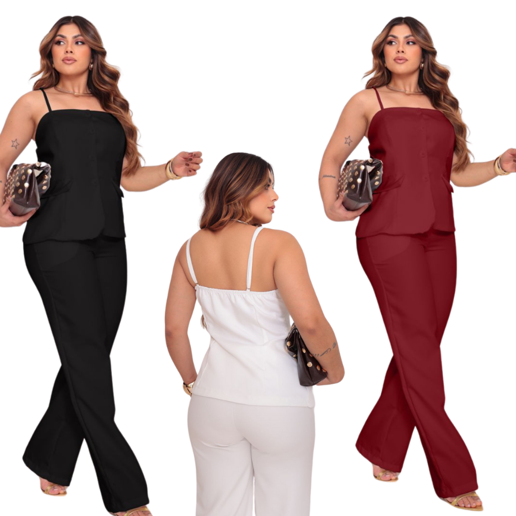 Conjunto De Alfaiataria Modelo Amanda 2 Peças Camisa de alça e Botões e Calça Com Zíper