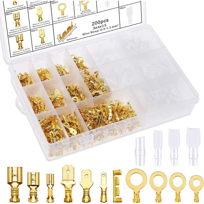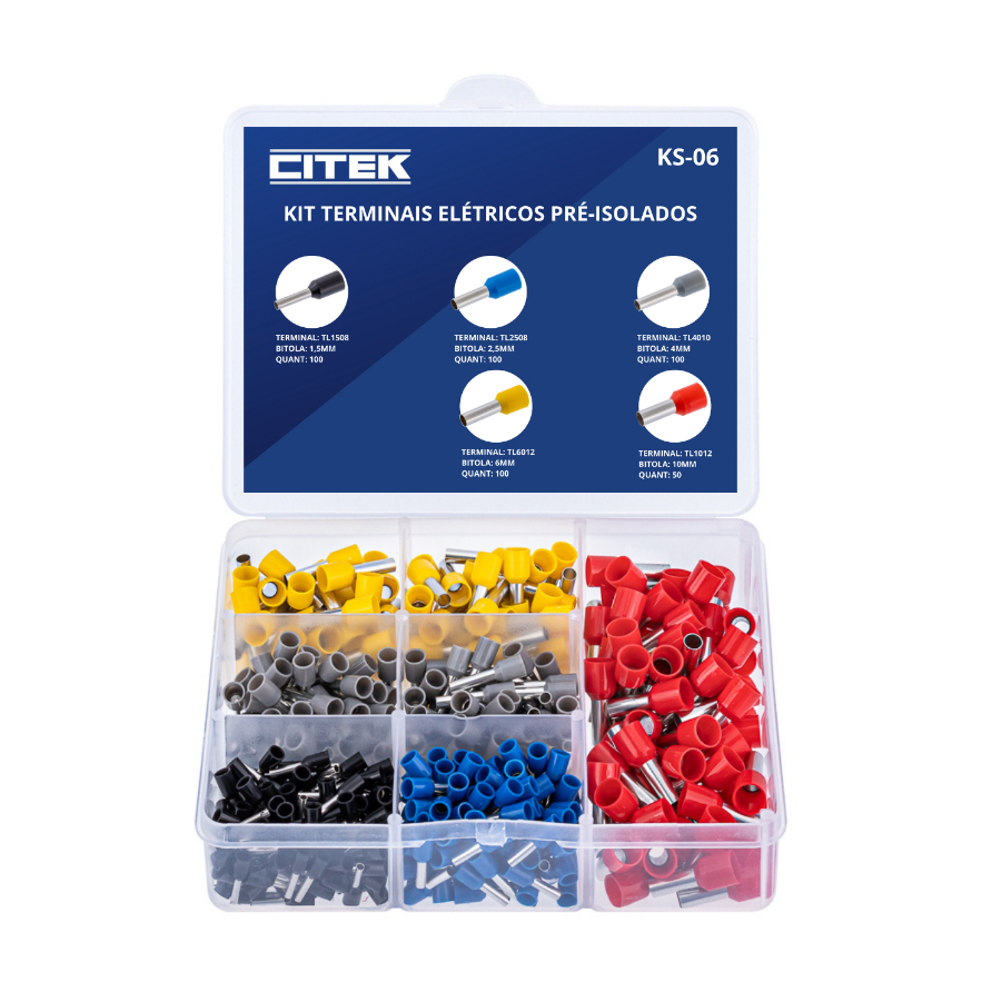 Kit Terminais Elétricos Ilhós Tubular 1,5mm E 2,5mm 200 Pç