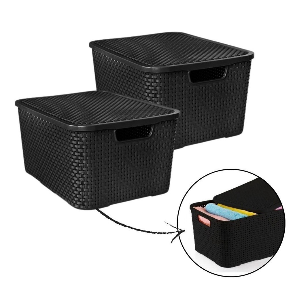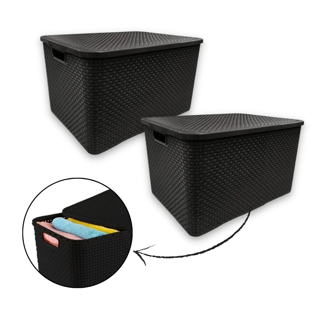 Kit 2 Caixa / Cesta Organizadora Grande 20 Litros Empilhavel Rattan Preta - Cesto Organizador 20L Para Guardar Coisas , Brinquedos