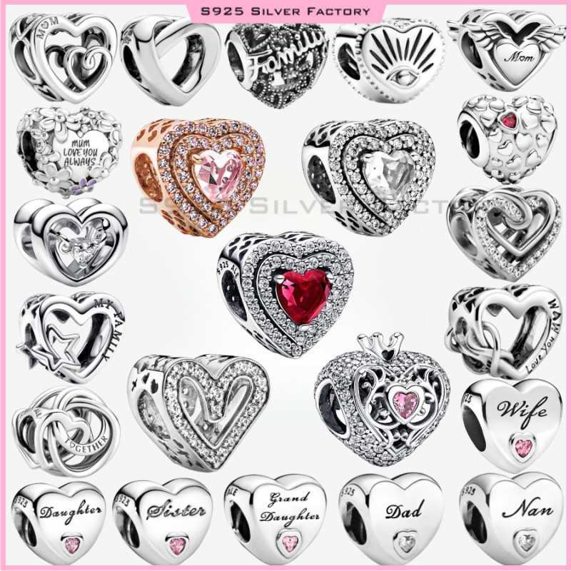 Amuleto De Coração Com Nível Brilhante , À Mão Livre Da Filha , Contas De Prata Pura 100 % 925 , Adequado Para Mulheres