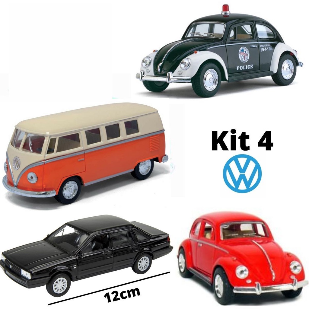 Kit 4 Carrinho de Coleção de Ferro Clássicos antigo Inesquecíveis do Brasil da Lendária Volkswagen 12 cm