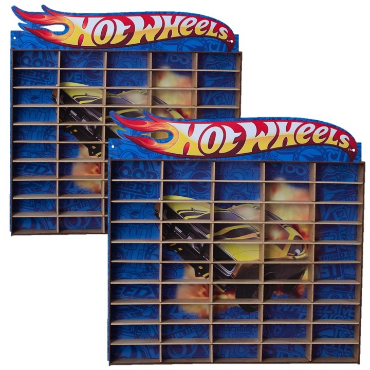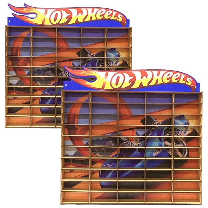 Kit Dois 2 Estantes Expositor Porta Carrinhos Hotwheels 50 Nichos Miniatura Prateleira Suporte Carros Organizador Brinquedo Coleção Vitrine Adesivada Coleção Mdf