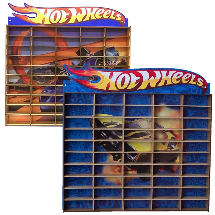 Kit Dois 2 Estantes Colorido Expositor Porta Carrinhos Hotwheels 50 Nichos Miniatura Prateleira Suporte Carros Organizador Brinquedo Coleção Vitrine Adesivada Coleção Mdf