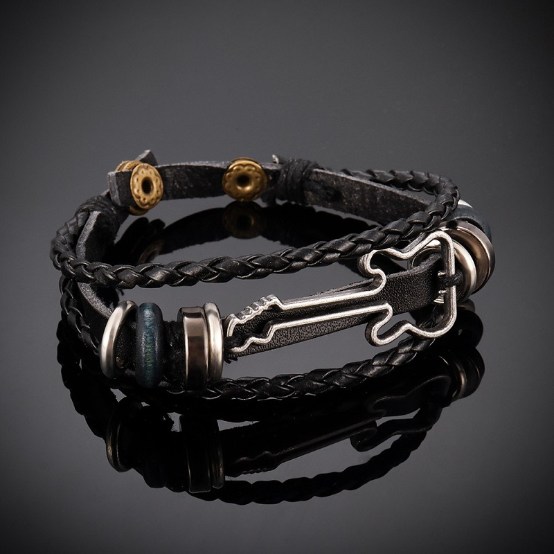 [Z H Jóias] Pulseira De Instrumento Musical Vintage Couro Moda Masculina E Feminina Aço Inoxidável Multilayer Beaded PU Malha Punk Party Rock Jewelry Acessórios