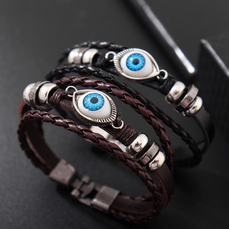 [Z H Jóias] Pulseira De Couro Vintage Rock Devil's Eye Leather Bracelet Homens E Mulheres Fashion Girlfriend Casal De Aço Inoxidável Multi Layer Beaded PU Punk Party Jewelry Acessórios