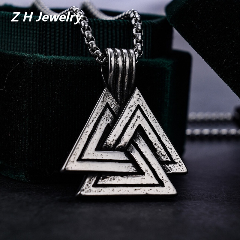 [Z H Jóias] Vintage Nordic Viking Triangle Hip Hop Pendant Moda Masculina E Feminina Colar De Aço Inoxidável Punk Party Rock Jewelry Acessórios