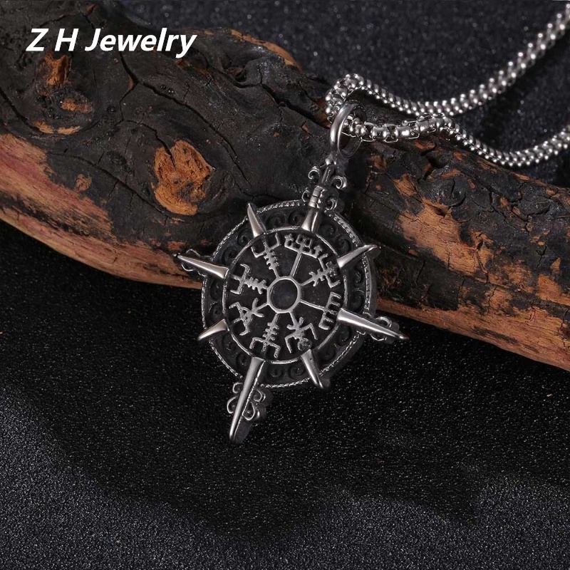 [Z H Jóias] Vintage Viking Hip Hop Rune Amulet Cross Pendant Moda Masculina E Feminina Colar De Aço Inoxidável Punk Party Rock Jewelry Acessórios