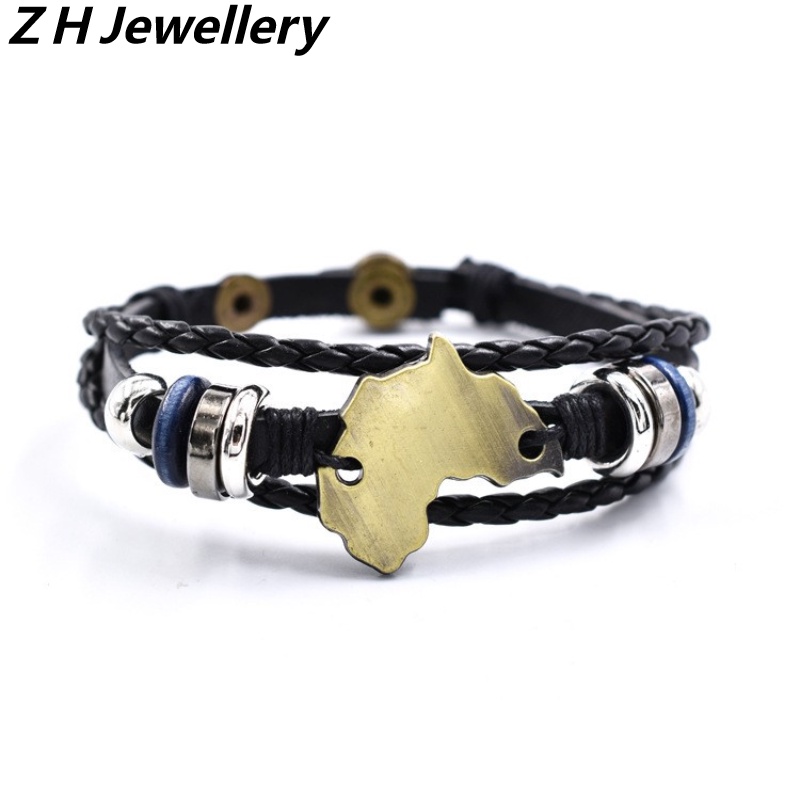 [Z H Jewelry] Vintage Mapa Africano Pulseira De Couro Com Contas Moda Masculina E Feminina Multilayer De Aço Inoxidável Punk Party Rock Accessories