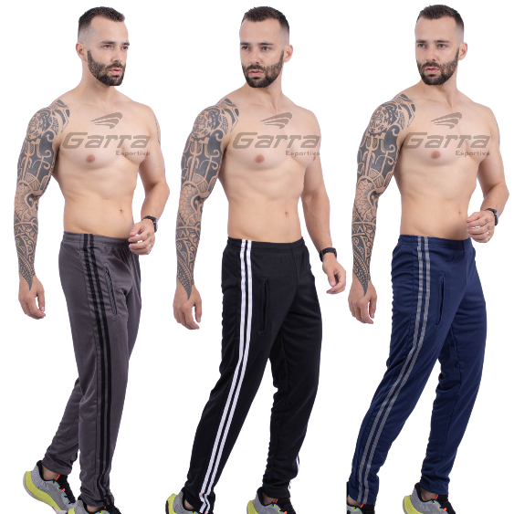 kit 2 Calças masculina para atividade física em academia e corrida com cordão listras na lateral e bolso com zíper
