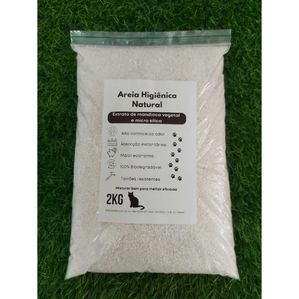 AREIA HIGIÊNICA NATURAL EXTRATO DE MANDIOCA E MICRO SÍLICA PARA GATOS - 2KG