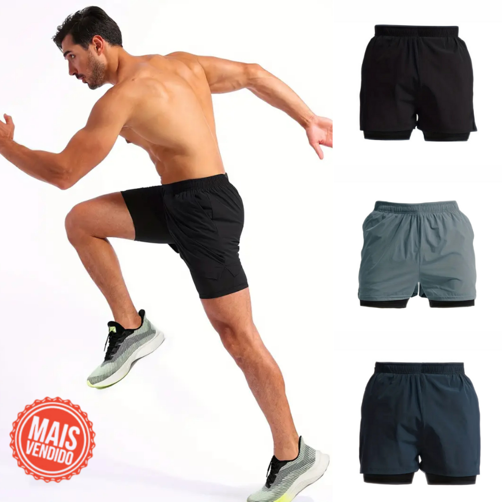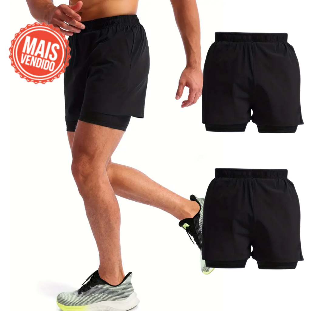 KIT 3 Bermuda Short 2 em 1 RUN Dry Fit Academia Masculina Treino Corrida Com Elastano