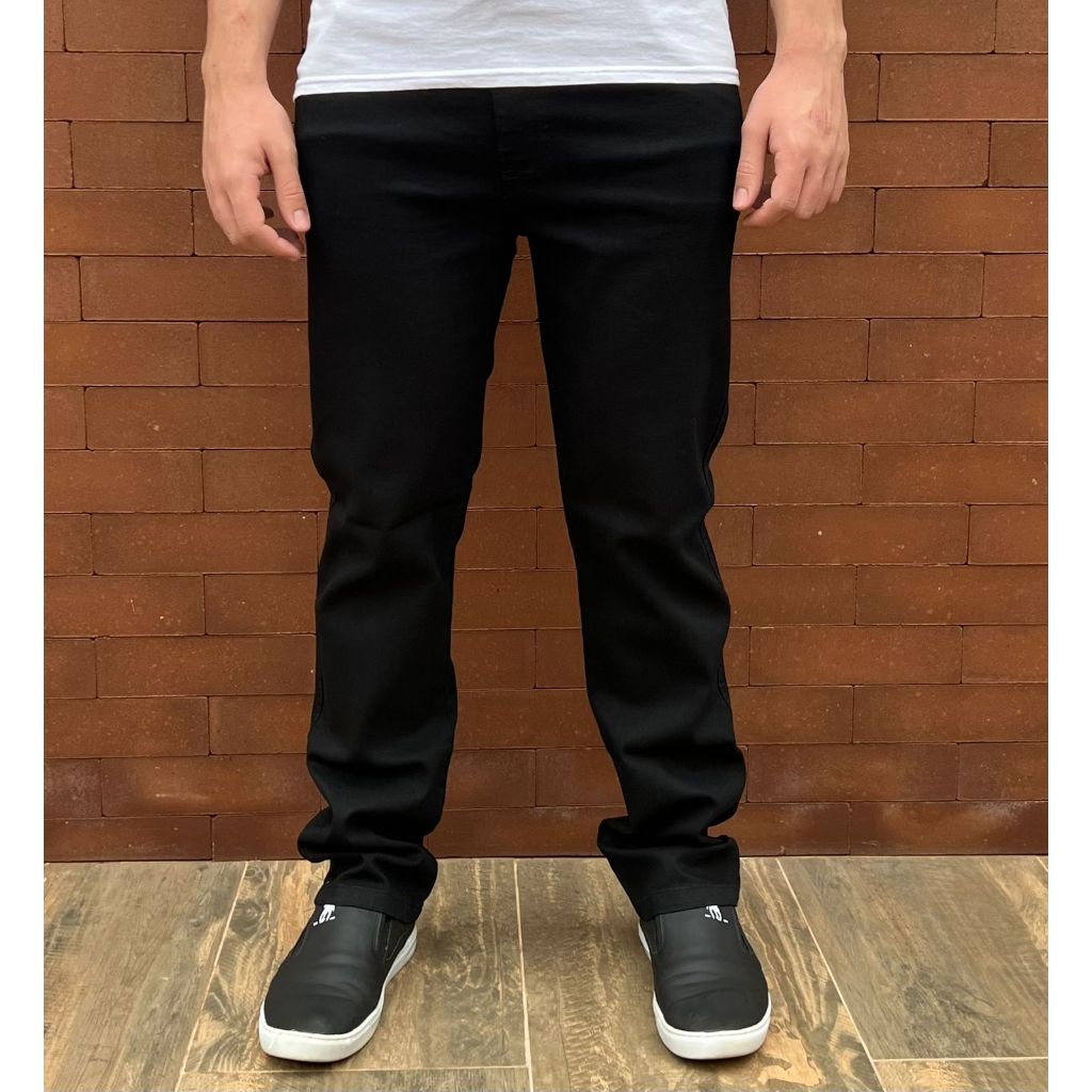 Calça Masculina Jeans Preta Escura Tradicional Básica Com Elastano Reforçada Trabalho Linha Premium Preço Promocional