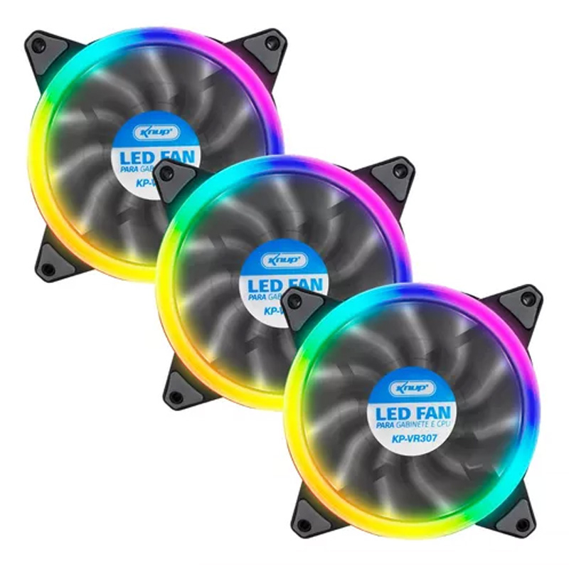 Kit 3 Fans Cooler Led Rgb 120mm Ventoinha Gabinete Pc Gamer Interface SATA
