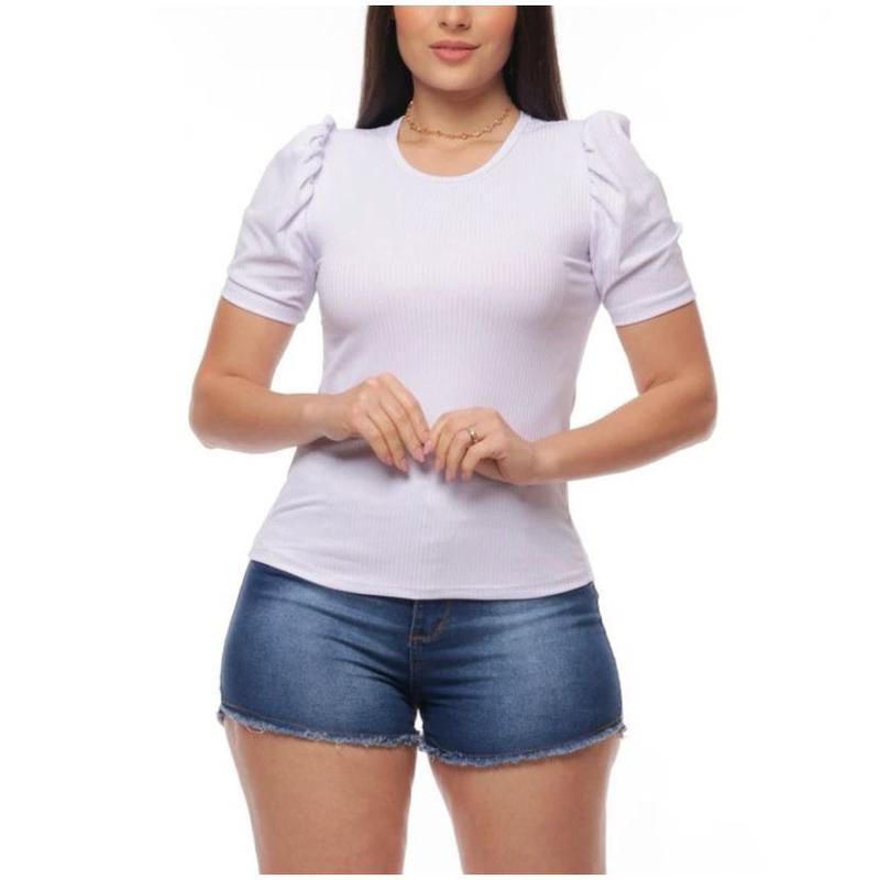 Kit 2 Blusas canelada gola rasa manga curta princesa moda feminina