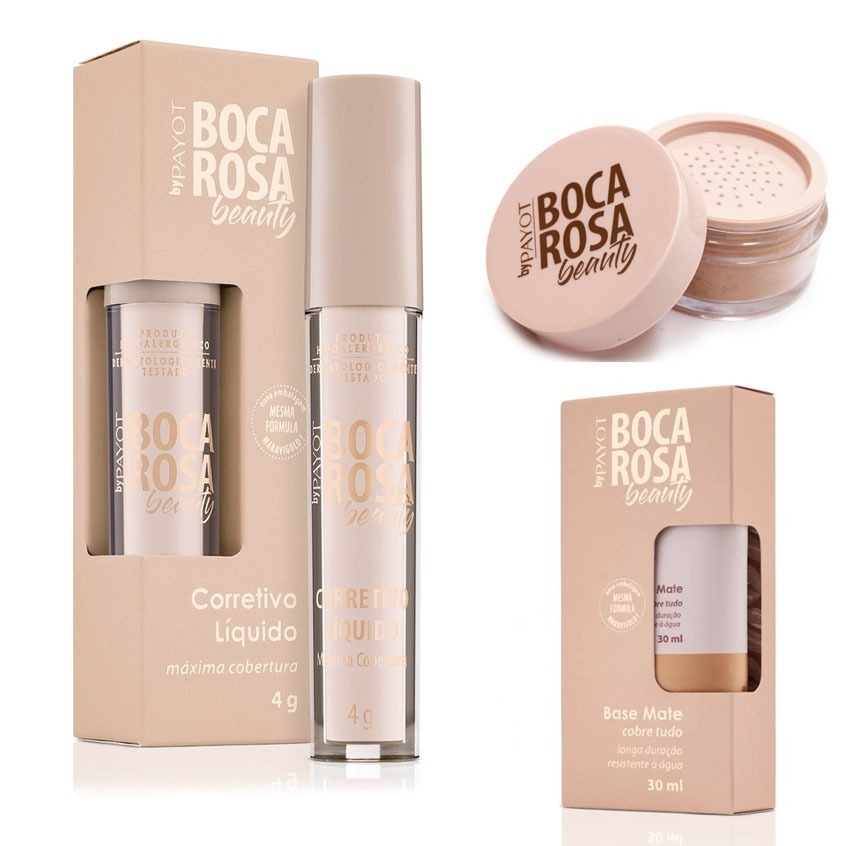 KIT 3 Pecas Base Boca Rosa + Pó Solto Mármore e Corretivo