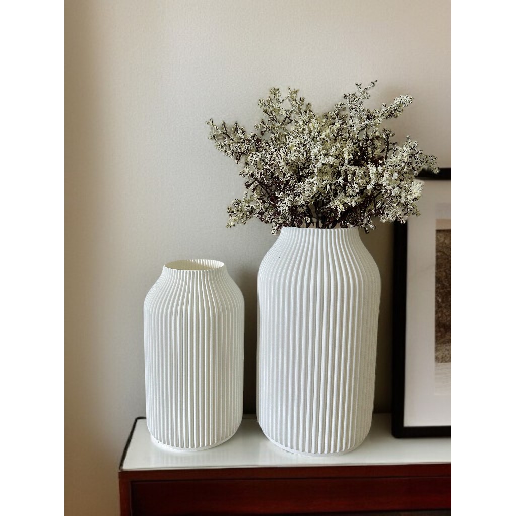 Vaso Cachepot Decorativo Detalhes em Linhas - Vaso Alto - Impressão 3D