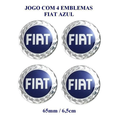 Jogo Emblema Fiat Azul Resinado 65mm P/calota De Roda Liga