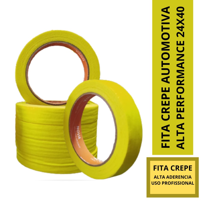 Kit 10 Rolos De Fita Crepe Automotiva Alta Performance Amarela 24mm X 40 Metros - 2.4 Cm Tipo 3m Maxima Aderencia Uso Profissional Pintura Pintor Funilaria Tipo Adere Super Cola Verde Amarelinha