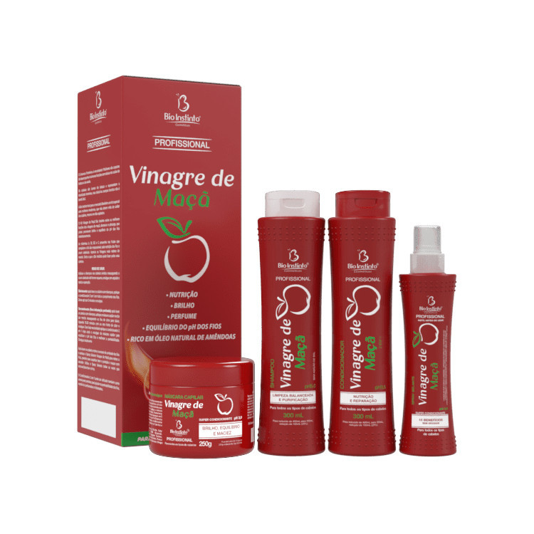 Kit Capilar Profissional Vinagre De Maçã 4 Produtos Tratamento Crescimento Cresce Força Volume cabelos - Bio Instinto