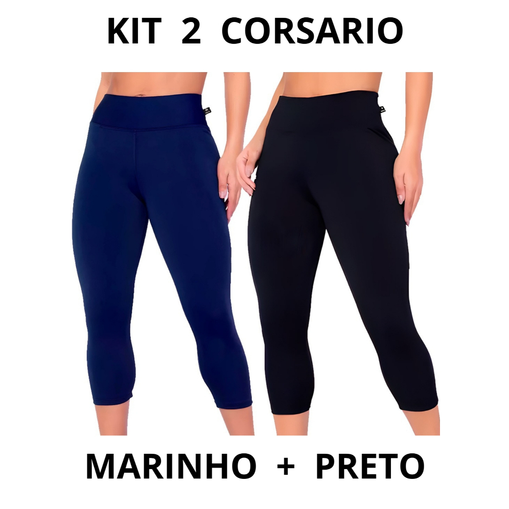 KIT 2 CALÇA LEGGING CORSARIO FEMININA CINTURA ALTA ACADEMIA FITNESS LISA SUPLEX
