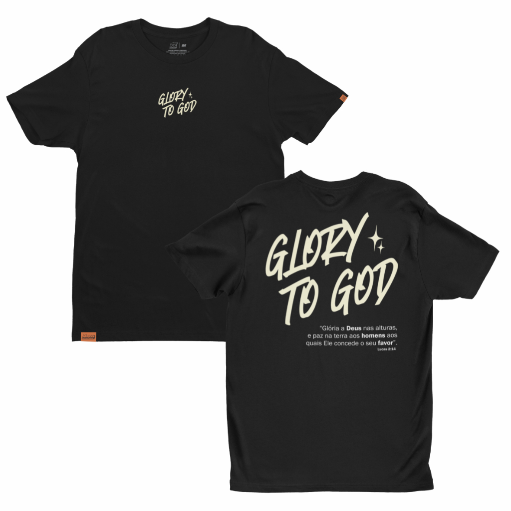 Camiseta Glory to God (Glória á Deus) Preta - Unissex - 100% Algodão - Camiseta Cristã, Evangélica, Gospel