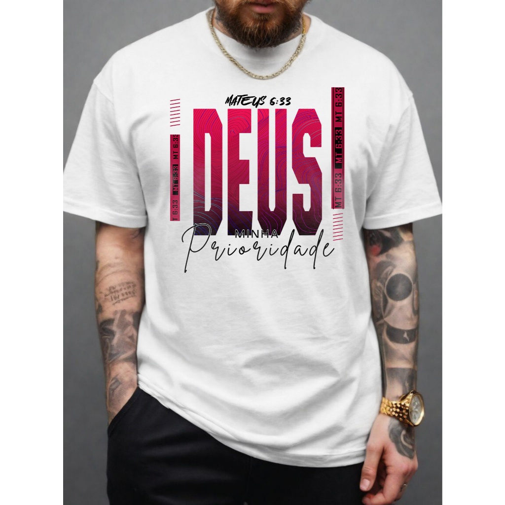 Camiseta Deus Prioridade Camisa Evangélica Jesus 100% Algodão Cristã