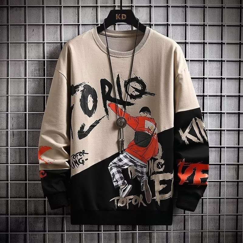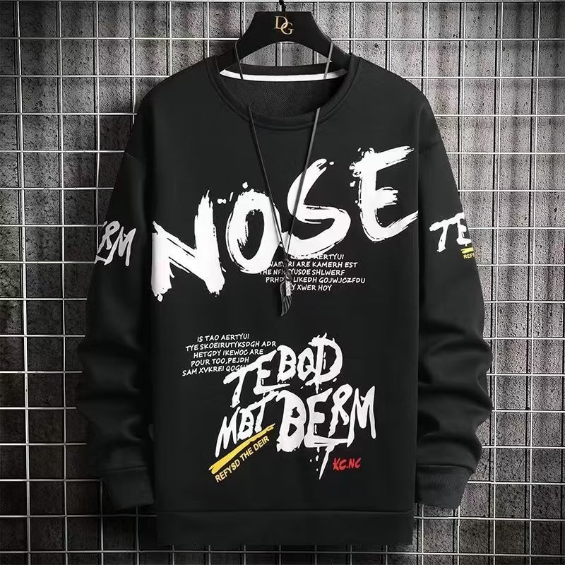 Inverno Coreano Dos Homens Pescoço Redondo Camiseta Manga Comprida Moletom Moda Hip Hop Graffiti Design Quente Longa Masculina Solta Preta Branca Casual Tamanho Grande Blusa