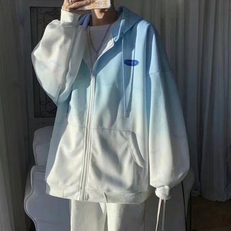 Capuz De Inverno Moda Masculina De Manga Longa Gradiente Com Zíper Casaco Solto Estilo Rua Coreana