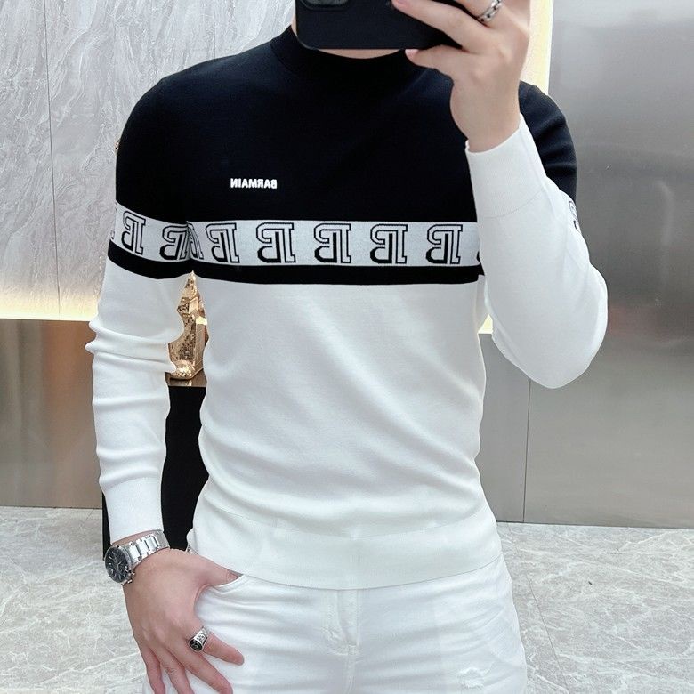 2023 Outono Inverno Novo Estilo Europeu de Mercadorias Street Wear Long-Sleeved Striped Long-Sleeved Moda Masculina de Manga Longa Slim-Fit All-