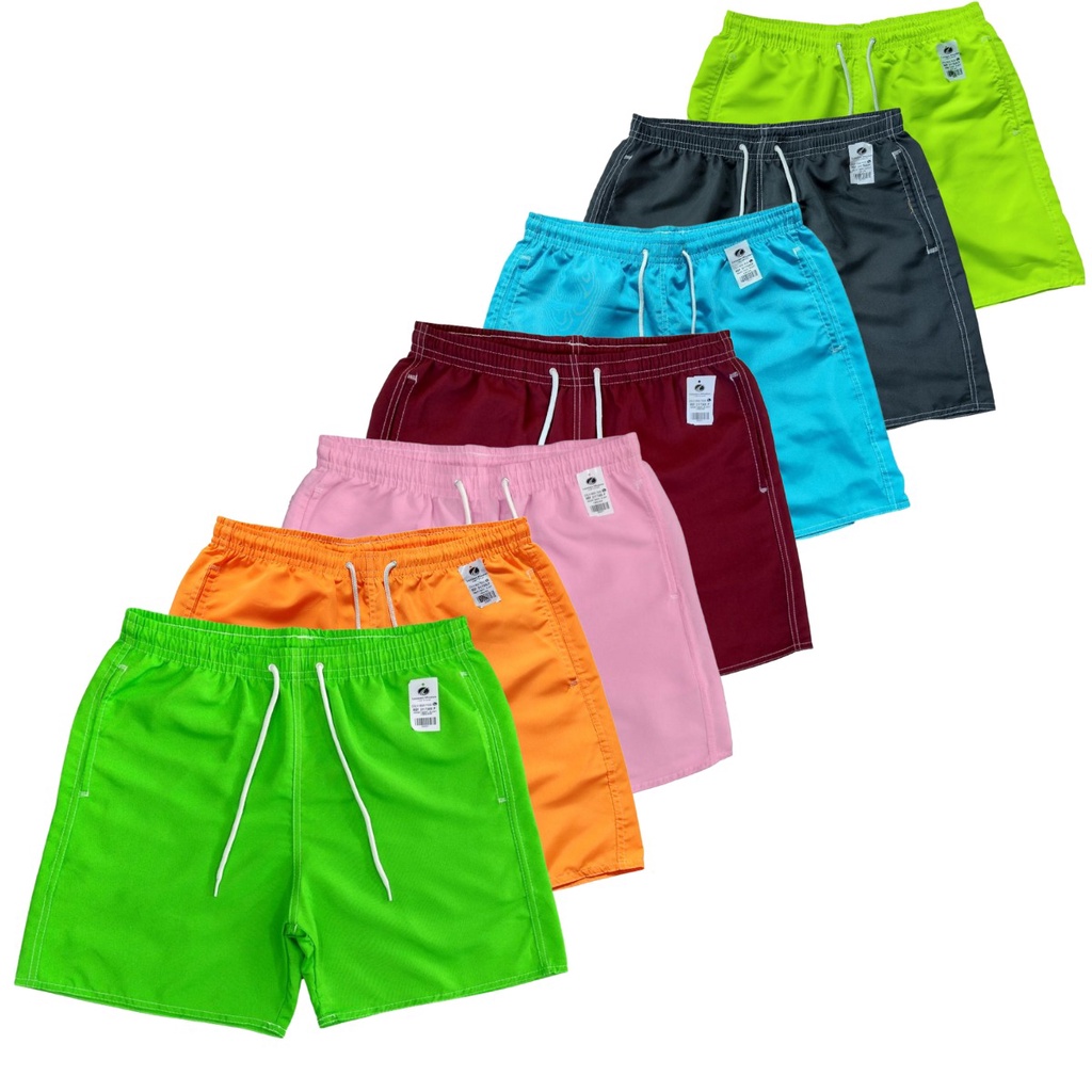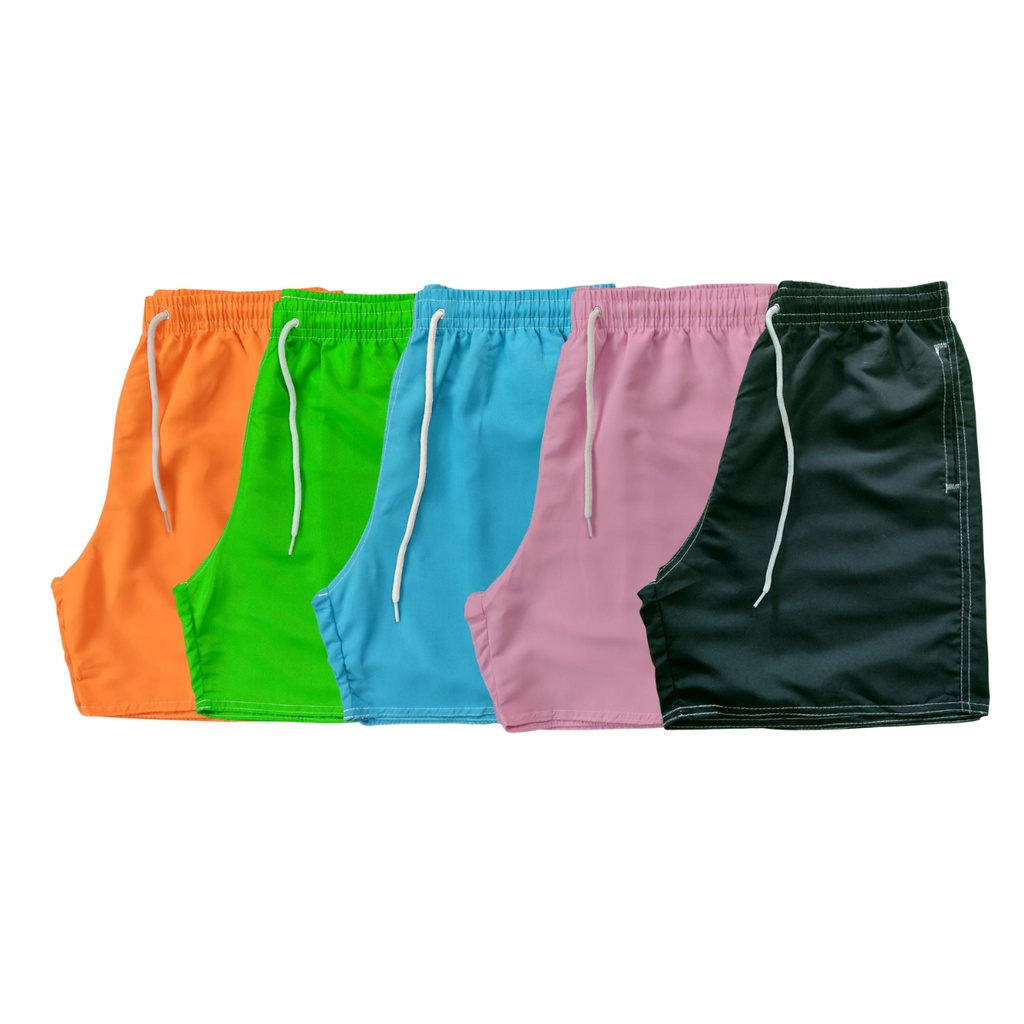Kit Com 5 Shorts Neon Mauricinho Masculino De Elástico Praia Lisos