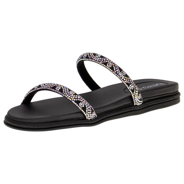 Tamanco papete feminino preto com strass beira rio - 8488.108