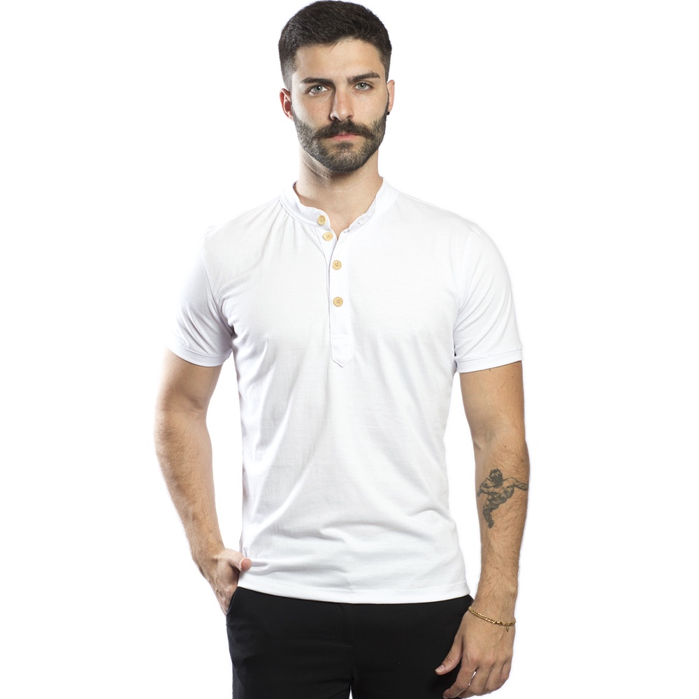 Camiseta Henley Slim de Botão Manga Curta e Gola Padre