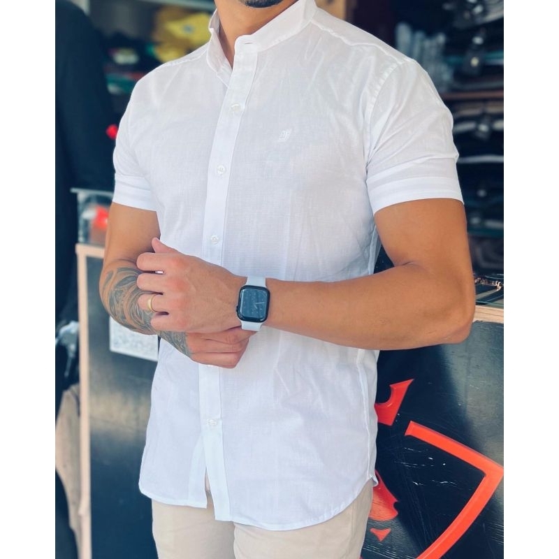 Camisa Social Gola Padre Camisa Masculina Social Gola Padre Camiseta Social Slim Fit Manga Curta Premium