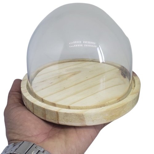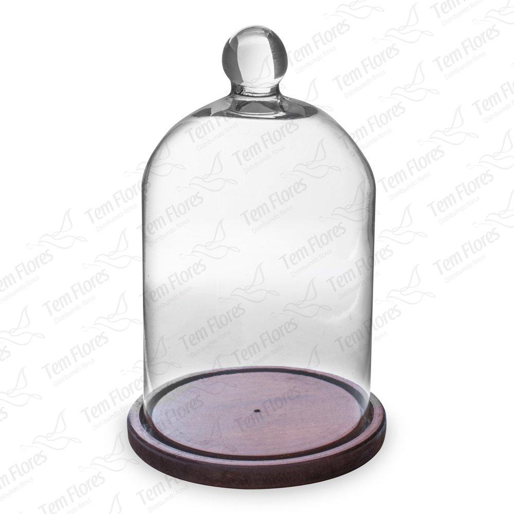 Cupula de vidro redoma 20x17cm com base de madeira