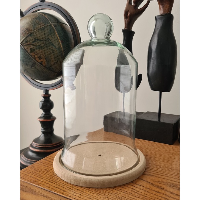 Redoma de Vidro Cúpula Grande Com Base Em Madeira