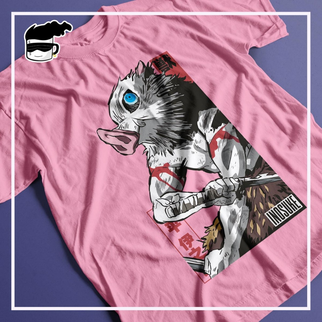 Camiseta Demon Slayer Inosuke Unissex Camisa Anime Kimetsu no Yaiba Rosa