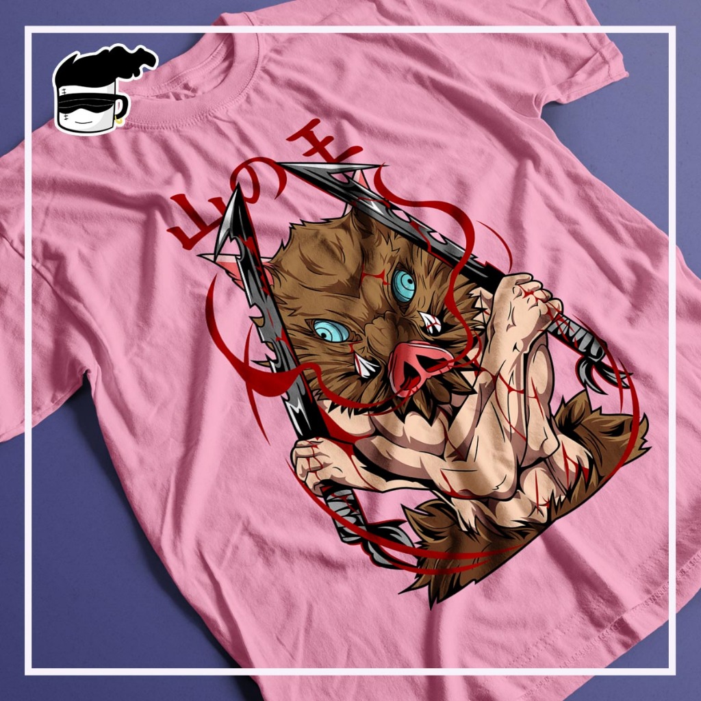 Camiseta Kimetsu No Yaiba Inosuke Unissex Camisa Anime Demon Slayer Rosa