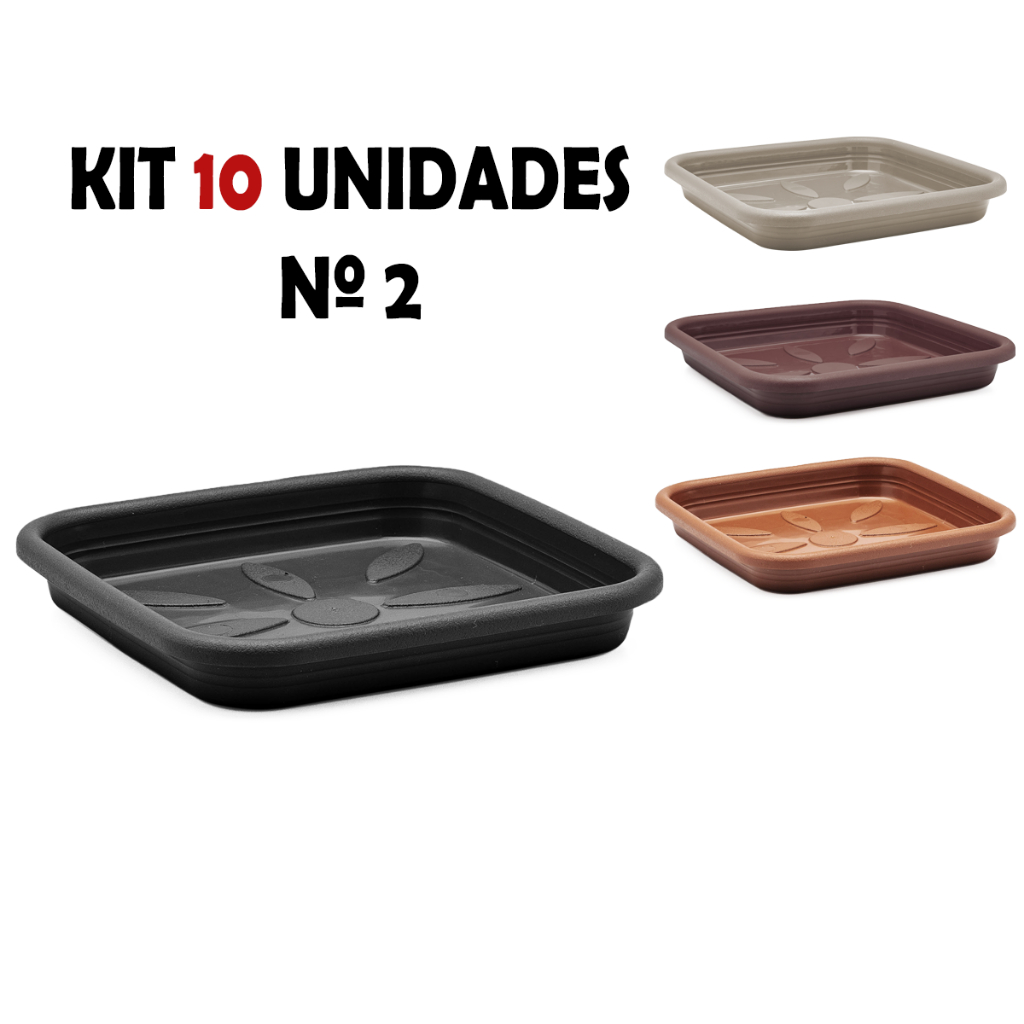 Kit 10 Pratos De Vaso Quadrado De Plástico Resistente N 2